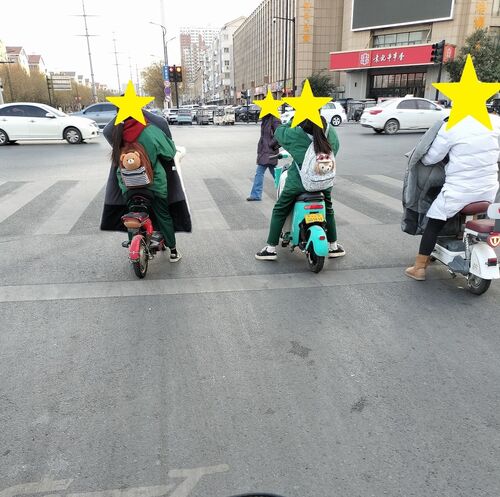 こんばんは。 17時現在の開封市 気温9度 湿度20%です。やや曇りの一日でした。 さてさて、 こちらは 先日 自転車で開封市内を走っている時に見かけた光景です。 前方の電動バイクに乗っていた2人の背中と目があいました。 なんて可愛い背中なのでしょ…