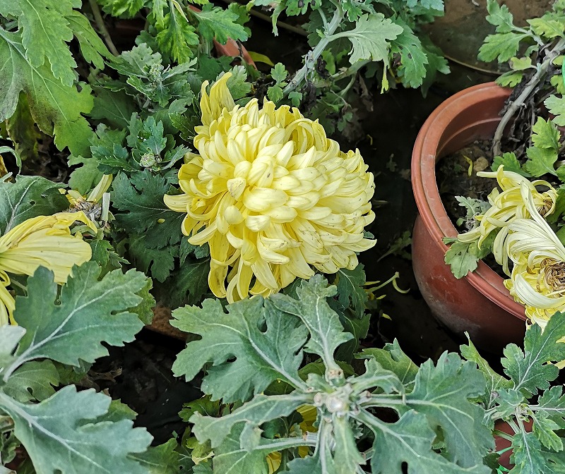 陰になっている部分は 比較的 菊の開花スピードが遅いようで、