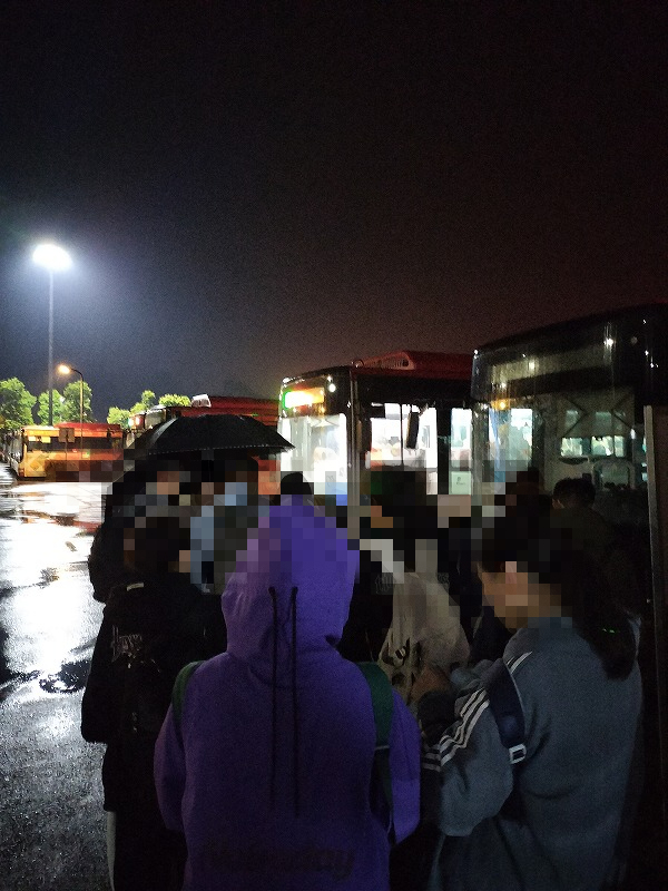 始発のバスはもう到着していて、すでに人でいっぱいでした。
