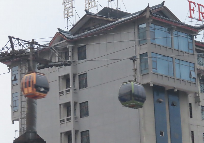 道路の上にロープ―ウェイがある光景、違和感がすごいです😄